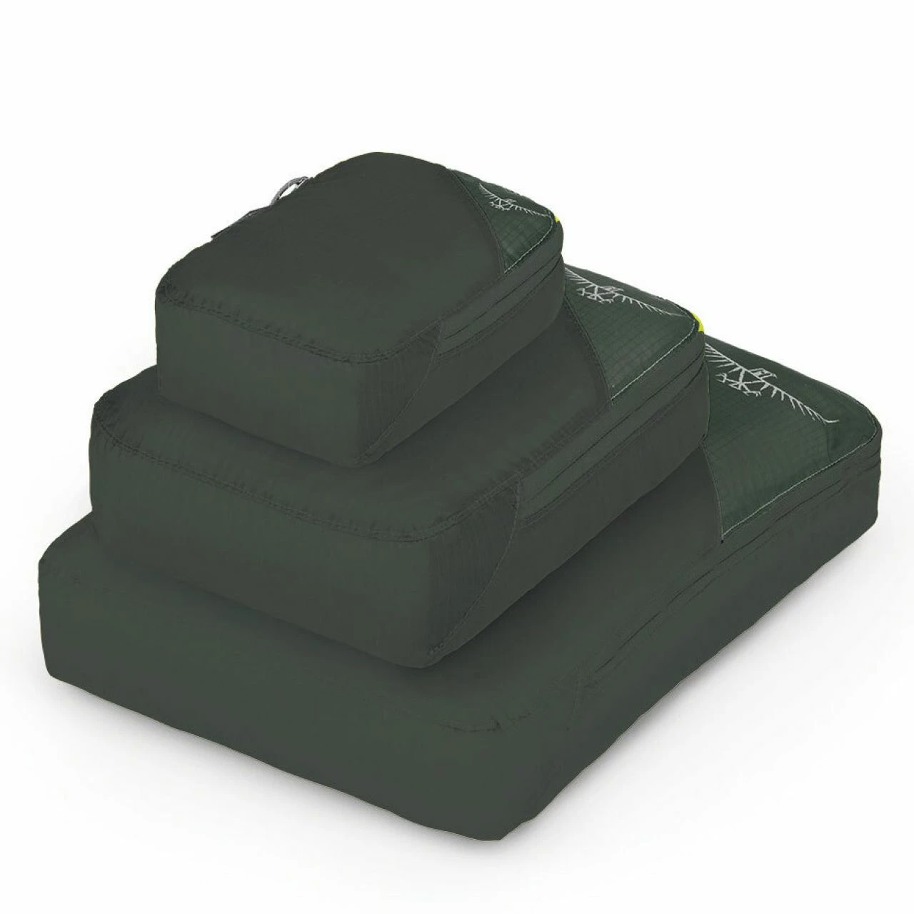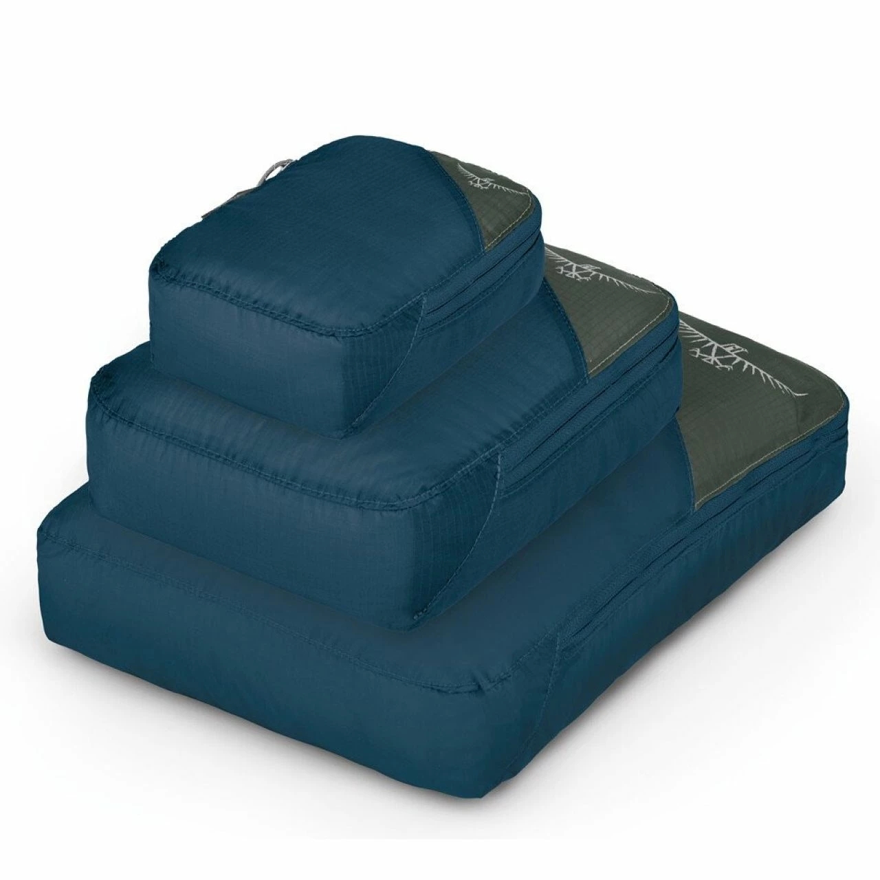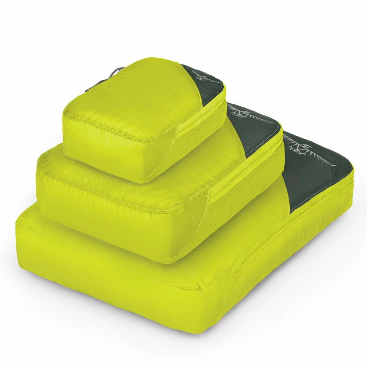 The Ultralight Packing Cube Set from Osprey helps you organize and compartmentalize your gear and clothing with a set of 3 cubes (SML, MED, LRG).