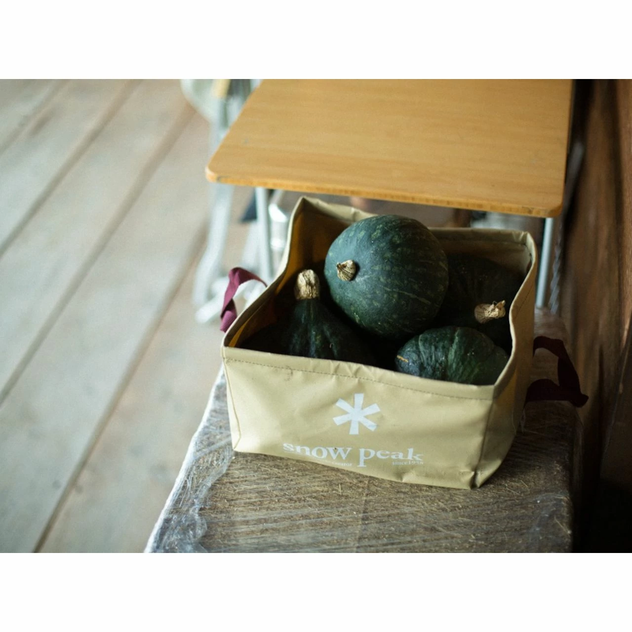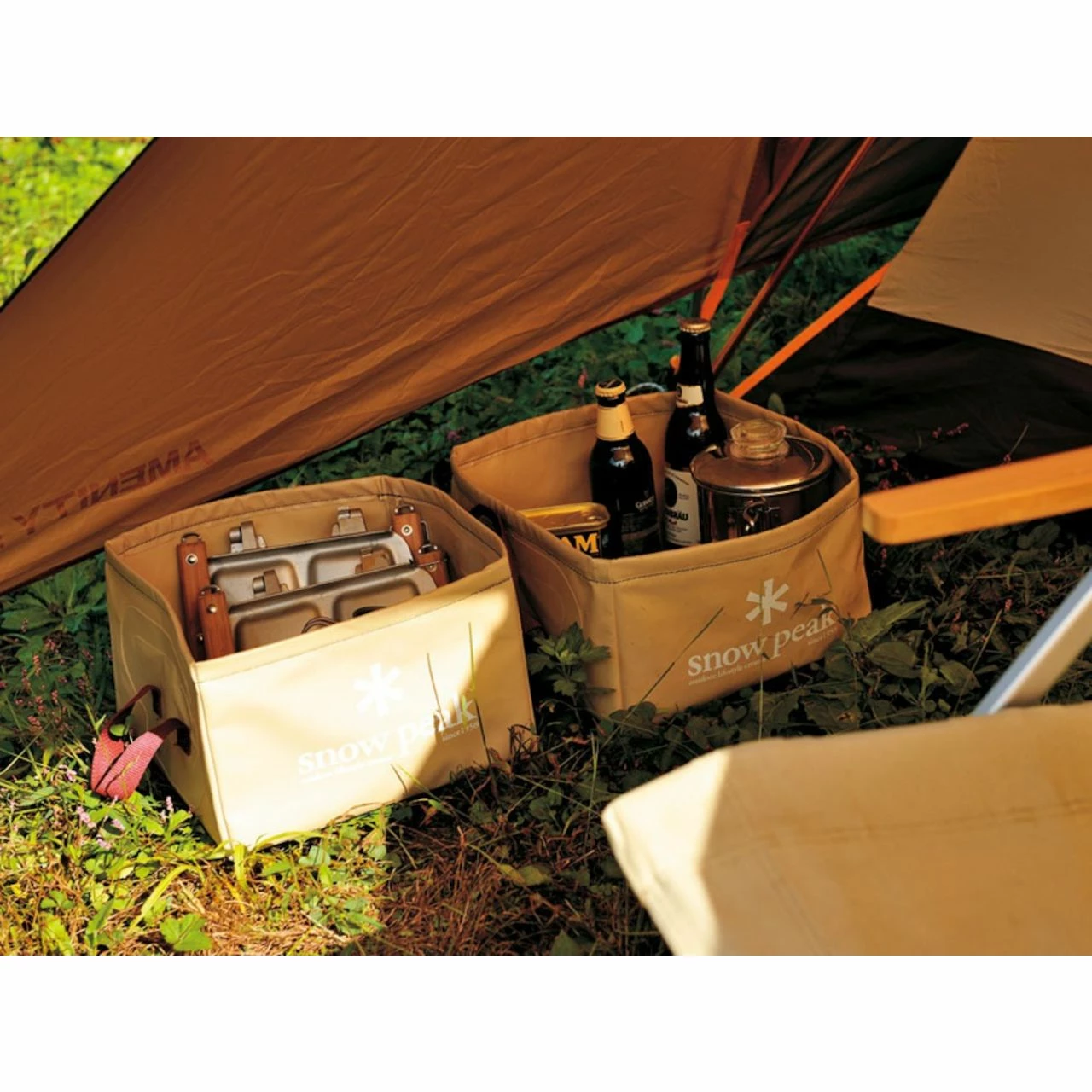 The Snow Peak Pack Bucket is a versatile 3.5-gallon bucket. Use it as a camp wash basin for dishes or store smaller camp accessories. The Pack Bucket has reinforced corners and handles for easy carrying. Fold it down flat for compact storage when not in use.