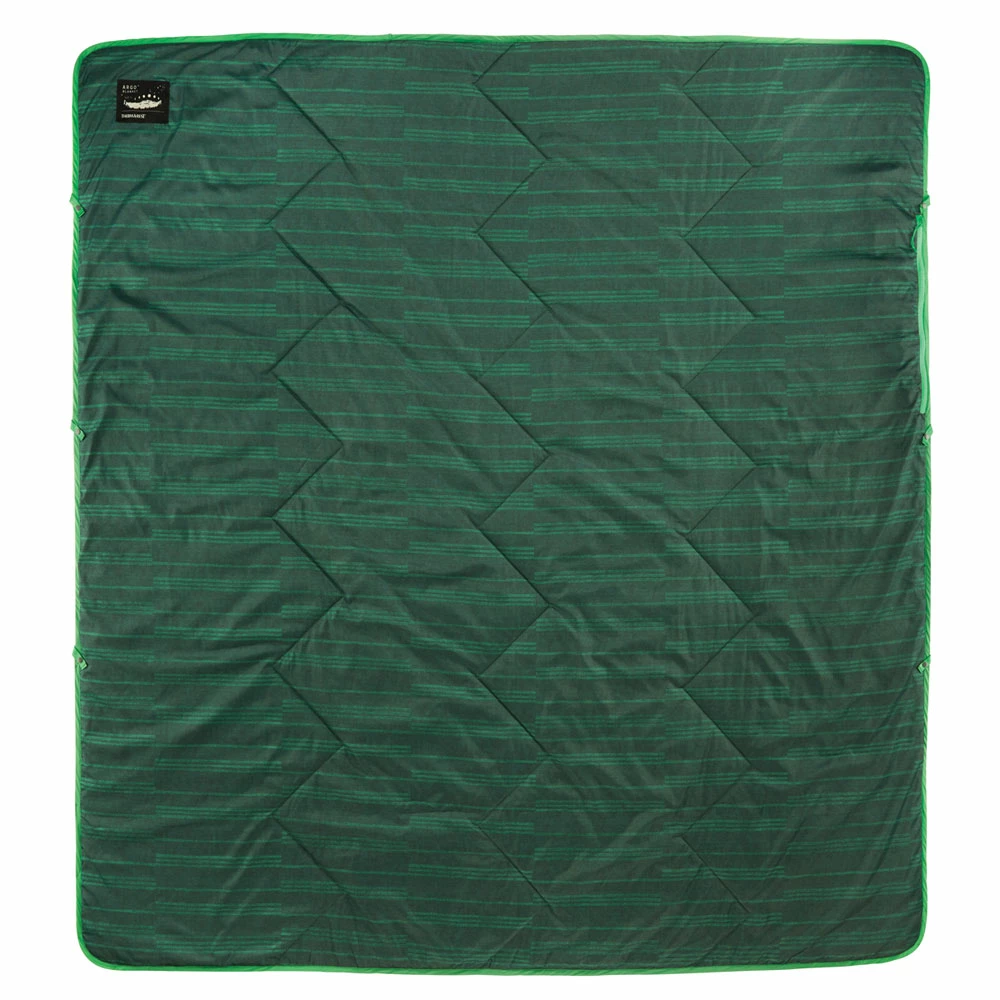 Utility meets luxury with this go-anywhere, two-person blanket. The Argo uses eraLoftâ„¢ insulation to provide packable and water-resistant warmth around camp. Soft-touch polyester lining is soft and cozy. Bold prints and colors provide mountain style while snap loops allow you to use the Argo by itself or as a part of your sleep system.