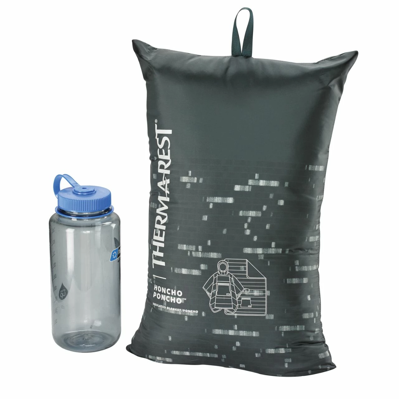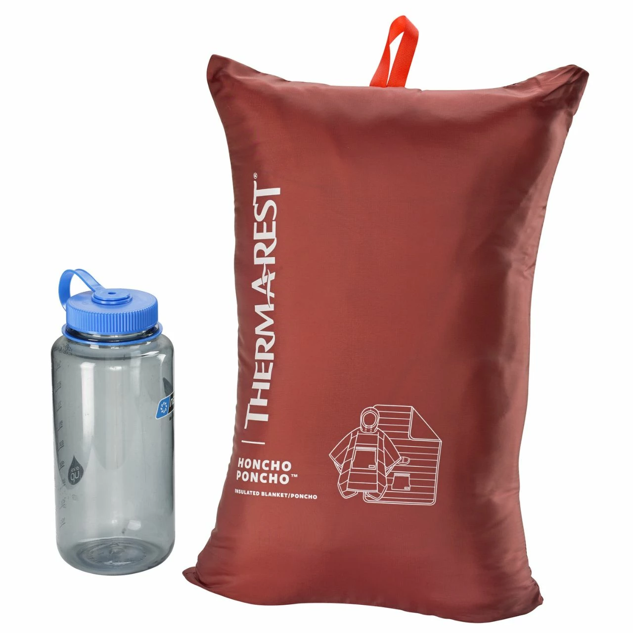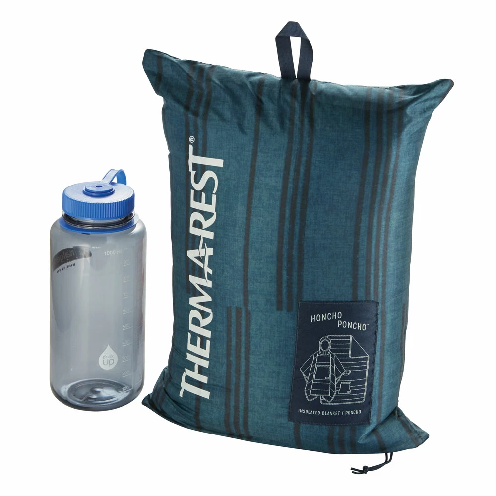 The Therm-a-Rest Honcho Poncho offers extra warmth and water resistance for any outdoor activity as a blanket or poncho. Wear it while relaxing around camp before layering it with your sleeping system for extra warmth through the night. The stylish, synthetic-insulated poncho easily packs down into the kangaroo pocket so that you can pack it anywhere you roam.